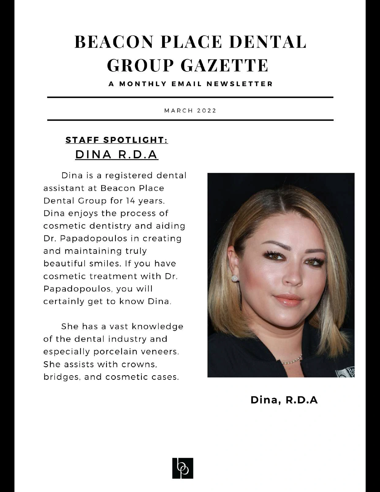 MARCH NEWSLETTER DINA 02 - Staff Spotlight : Dina R.D.A